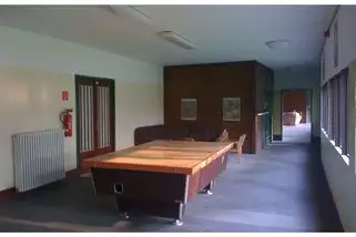 Das langgezogene Gebäude ist für große und kleine Gruppen ausgelegt und behindertengerecht eingerichtet: Drei geräumige Schlafsäle mit Stockbetten für insgesamt 54 Personen. Drei Betreuerzimmer mit zwei, drei und vier Betten. Lehrer und Betreuungspersonen können entweder eines der Betreuerzimmer buchen oder unsere großzügige Lehrerwohnung mieten. Ein Seminarraum für ca. 30 Personen ist vorhanden.