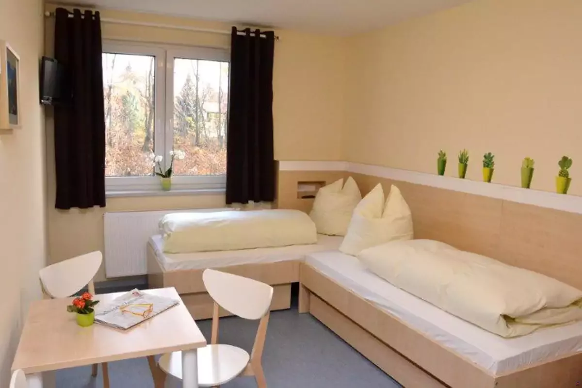 Die Zimmer sind zwar nicht frisch renoviert, aber sauber und zweckmäßig. Die meisten mit Zugang zu den Balkonen. Gutes Preis-Leistungsverhältnis. Das Haus ist ein Hingucker, eine riesige Villa mit viel Holzvertäfelungen und Bleiglasfenstern. Es stand uns (9. Klasse mit 28 Schülern) komplett zur Verfügung, außerdem eine Balkonterasse und Außenglände mit Tischtennisplatte. In der Nähe ein Supermarkt und gut zu Fuß erreichbar der Bahnhof und die Görlitzer Innenstadt (unbedingt sehenswert!). Wir waren ausgesprochen zufrieden mit Frühstücks- und Abendbrotbuffet. Das Personal kann gar nicht genug gelobt werden für sein durchgängig freundliches Entgegenkommen uns gegenüber. Wir fühlten uns oft nicht nur gut versorgt, sondern auch umsorgt. Das paßt übrigens zu der bemerkenswerten Hilfsbereitschaft, die uns in den vier Tagen unseres Görlitzaufenthaltes an den Bewohnern dieser Stadt aufgefallen ist. Aber das ist ein anderes Thema. Wir waren jedenfalls ausgesprochen zufrieden mit Haus und Stadt, vielen Dank dafür!