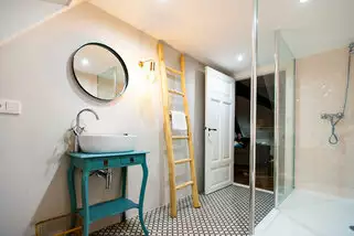 Platz für bis zu 39 Personen verteilt über 2 Häuser mit insgesamt 16 Schlafzimmer und 9 Bäder. 3 mehr als 70 qm große und 4 etwas kleinere Gemeinschaftsräume. Weitere Merkmale: