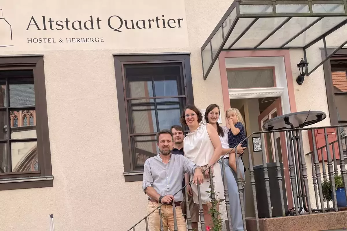 Wir heißen euch Herzlich Willkommen im Altstadt Quartier in Schotten! Wir, das sind Jasmin & Kevin, Katrin & Christian. Zwischen Oktober 2021 und März 2024 haben wir das 200 Jahre alte Fachwerkhaus gegenüber der Liebfrauenkirche liebevoll renoviert und ökologisch um- und ausgebaut. Wenn ihr Charme und etwas mehr Komfort schätzt, als in Gruppenhäusern üblich, seid ihr bei uns genau richtig!
