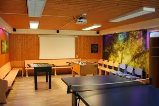 Der Saal im Haus Zion steht natürlich nicht nur bei der Belegung von Haus Zion Haus zur Verfügung. Gruppen, die die Häuser Sinai und Bethanien belegen, können unabhängig davon, ob sie im Haus Zion untergebracht sind, diesen, unseren größten Mehrzweckraum, buchen und benutzen.
