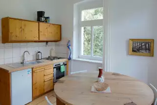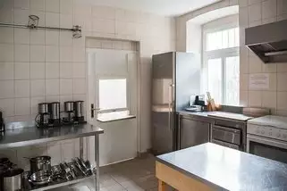 Zur selbständigen Verpflegung steht eine voll ausgestattete Küche im Erdgeschoss zur Verfügung.