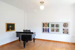 Salon "Rienzi", ein Seminarraum mit Wiener Flügel, gleich neben der Bibliothek und dem separaten Seminarleiterzimmer. Im Eingangsbereich befinden sich eine Suite sowie der Salon "Parzival" mit angegliedertem Gesellschaftsraum (Salon mit Zugang zur Terrasse), ein kleiner Frühstücksraum neben der Küche sowie ein Bad.