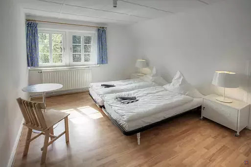 1 Zimmer hat 4 Schlafplätze: 1 Doppelbett + 1 Doppelbett (Fuß an Fuß)