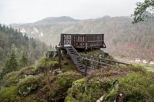 Die Zufahrt wird vom hauseigenen Felsen überragt. Man kann um den Felsen herumgehen oder von der hauseigenen Plattform die Aussicht genießen, Ein weiterer Weg führt vom Haus zum Aschersteig, der ein Teil des bekannten Malerwegs ist. Sie können dem bestehenden Wanderweg nach Belieben folgen.