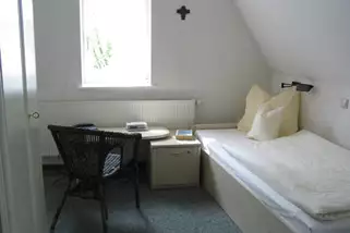 Unsere modern ausgestatteten Zimmer tragen mit Dusche, WC und Telefon und WLAN zu Ihrem Wohlbefinden bei. Insgesamt stehen für unsere Übernachtungsgäste 26 Betten zur Verfügung: 3 Einzelzimmer mit separatem Bad, 9 Einzelzimmer mit gemeinsamer Badbenutzung je zu zweit sowie 6 Doppelzimmer mit separatem Bad. Ein gemütlich eingerichtetes Terrassenzimmer mit Fernsehecke sowie unsere Dachterrasse laden zum Verweilen ein. Unsere Tagungsräume sind mit WLAN, Beamer, Overheadprojektor, Videorecorder und Moderationsmaterialien ausgestattet.