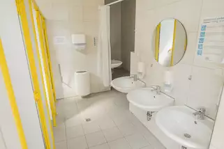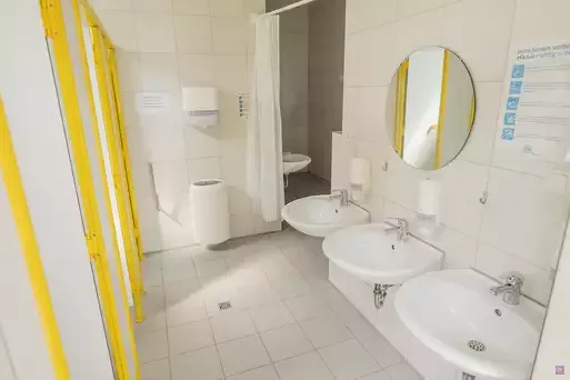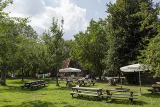 Platz für 400 Personen, fließend Wasser, Strom, Sanitäranlagen, Kochstelle, Dusche, Aufenthaltsraum