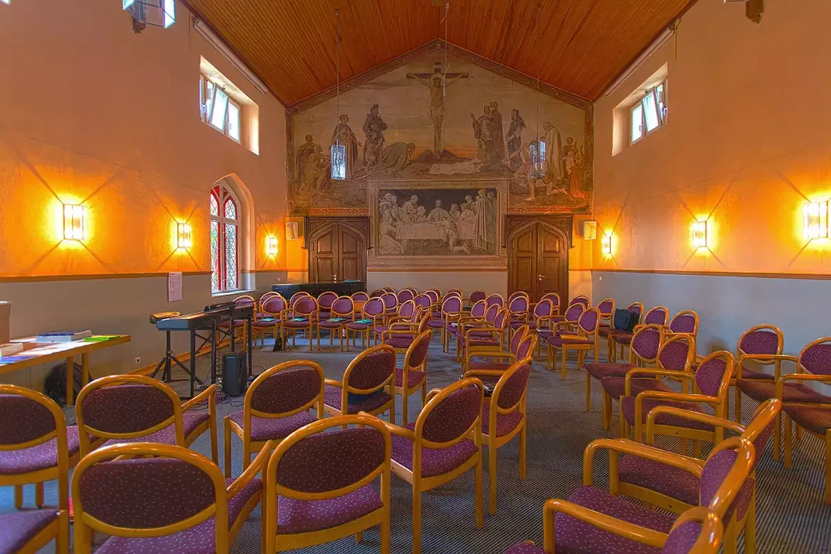 Im Haus finden Sie Gruppen- und Tagungsräume für 20 bis 90 Personen. Moderne Medientechnik steht bereit. Im hellen modernen Speiseraum nehmen Sie gemeinsam Ihre Mahlzeiten ein.