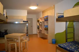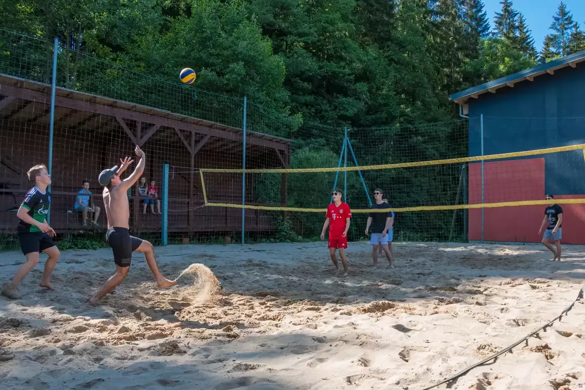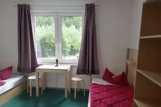 Spitzenunterkunft: reichlich Platz in jedem der Zimmer, in den Gruppenräumen und im großen EG-Saal! Zimmer und Nasszellen sind wohl erst unlängst saniert worden und übertreffen bei weitem Jugendherbergs-Niveau. Die Aussenanlagen bieten Beachvolleyball, Basketball, Fussball, die sehr gute Kletterhalle nebenan und eine herrliche Wanderumgebung am murmelnden Bach noch dazu! Zum Tanzen gibt es eine leistungsstarke Musikanlage und niemand weit und breit, der sich am Krach stören könnte! Die Kommunikation mit Herrn Leistner lief völlig unkompliziert und reibungslos, die Küchenfee Ines ist ein Schatz und erfüllte jeden Wunsch was Vegetarisches, Veganes, Nachschlag, Kaffee-Nachkochen oder Überstunden am Frühstücksbuffet anbelangte! Klare Empfehlung für große Gruppen bis max 88 Personen! Preis/Leistungsverhältnis ziemlich unschlagbar…..