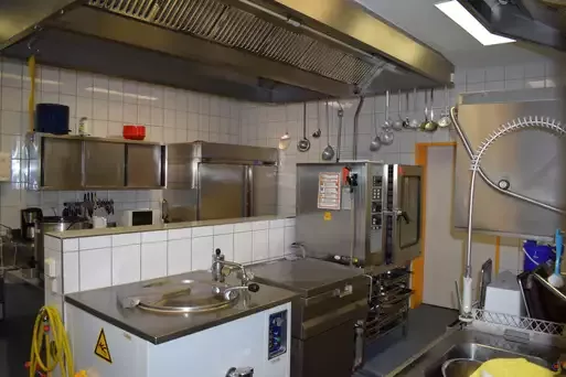Für große Selbstversorgergruppen gibt es eine komplett ausgestattete Großküche.