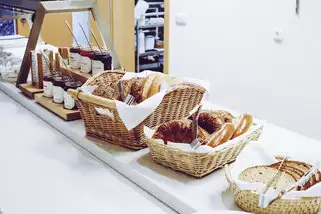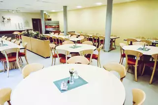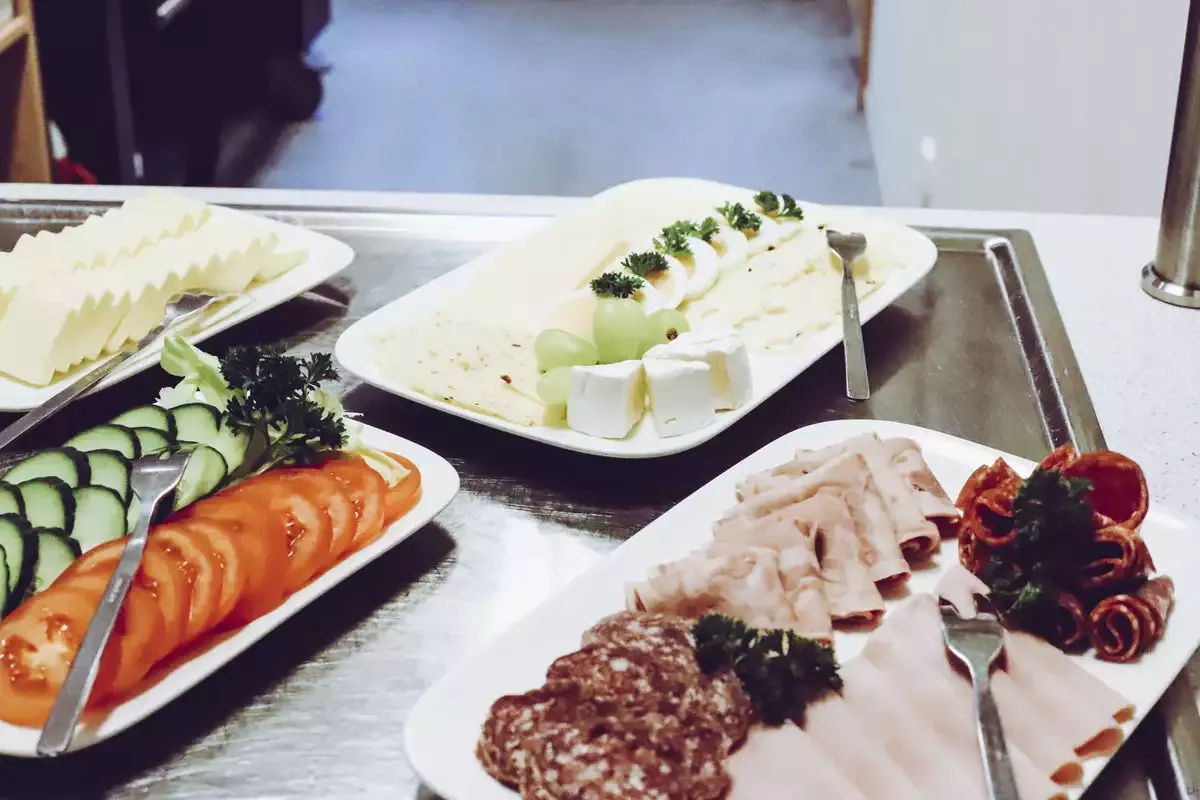 In unserem Speisesaal bieten wir Ihnen während Ihres Aufenthalts bei uns Frühstück, Mittagessen und Abendessen in Buffetform an. Die Kaffeepausen während Ihrer Tagung nehmen Sie im Tagungsraum ein. An unserem beliebten Frühstücksbuffet finden Sie alles, was das Herz begehrt: Neben Müsli Joghurt, frischen Obst und Gemüse können Sie zwischen frischen Bäckerbrötchen und verschiedenen Marmeladen auswählen.