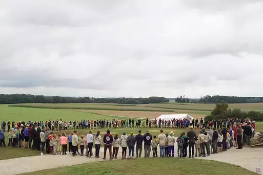 Platz für 400 Personen, fließend Wasser, Strom, Sanitäranlagen, Kochstelle, Dusche, Aufenthaltsraum