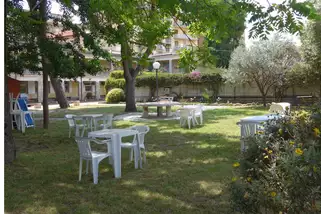 Es gibt Räume für Tagungen, Workshops und Seminare. Das Gästehaus ist umgeben von einem weitläufigen Garten, in dem die Gäste im Schatten der Pinien entspannen und eine Partie Tischtennis oder Volleyball spielen können. Für kleine Gäste gibt es einen Kinderspielplatz.