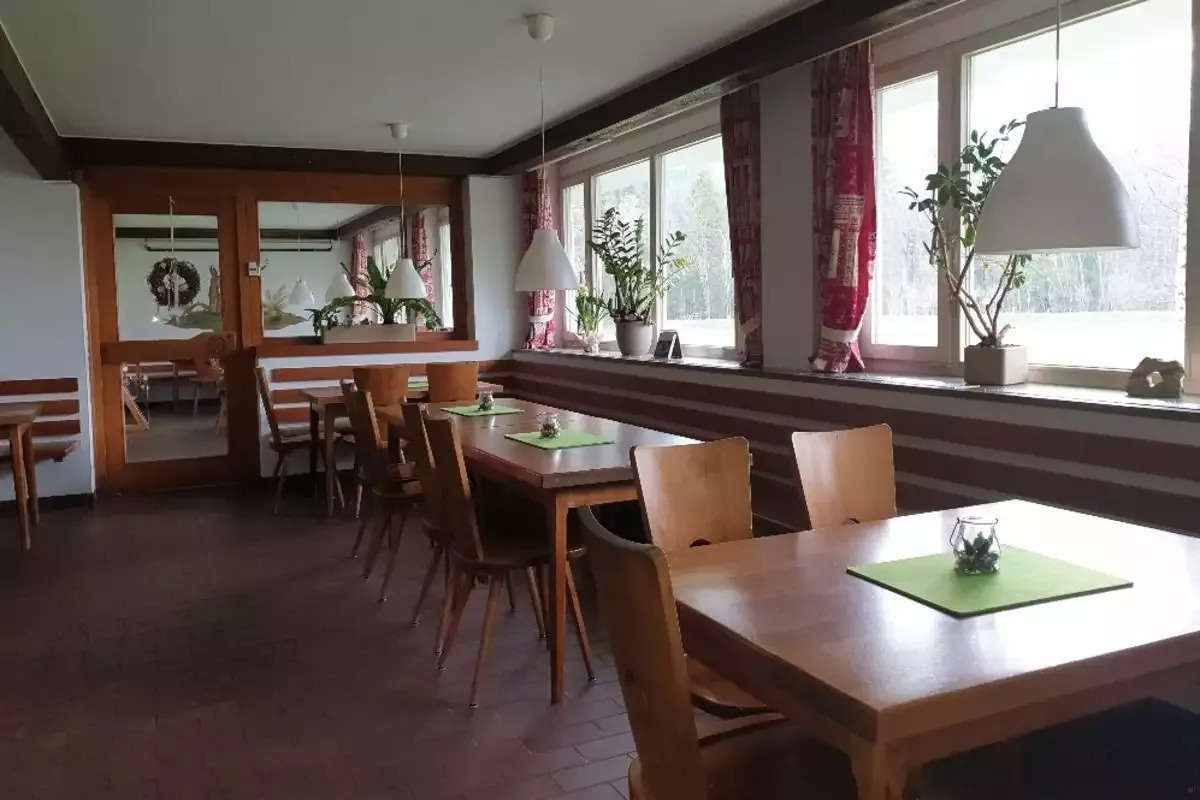 81 Schlafplätze verteilt auf Einzel-, Zweibett-, Vierbett- und Sechsbett-Zimmer (alle mit Waschbecken, teils mit Balkon, Bettwäsche wird gestellt). Große Selbstversorger Küche, 2 Gaststuben, Seminarraum.