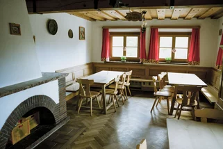 2- bis 10-Bettzimmer mit Etagendusche-/WC, Gemeinschaftsräume mit Hüttencharakter und Kamin.