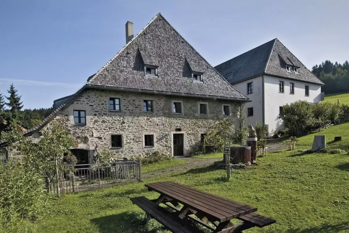 Einsame Spitze und Natur pur! Im höchsten Bergdorf des Bayersichen Waldes, in Neuschönau, liegt inmitten des Nationalparks die Umwelt|Jugendherberge Waldhäuser, die ebenfalls zertifiziert ist für Familien, Musik- & Tagungsgäste! Das rustikale Berghaus schmiegt sich idyllisch an den Berg Lusen.