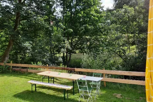 Großer Garten am Fluss Oker mit vielen Möglichkeiten zum Entspannen, Badminton spielen, Grillen, Fußball, usw.