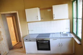 Die Seminarküche bietet einen 360 cm langen Buchentisch mit 14 Sitzplätzen.