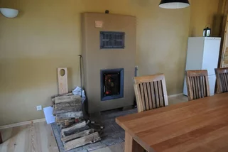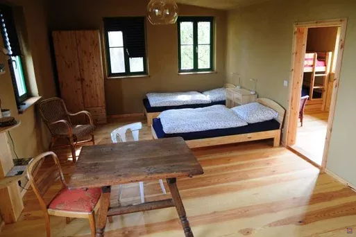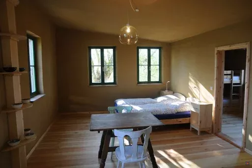Im Obergeschoss befinden sich zwei Ferienwohnungen mit insgesamt drei Räumen, in denen bis zu acht Personen Unterkunft finden können. Die durch den Seminarofen beheizten Wandheizungen in den Lehmwänden bewirken in der kalten Jahreszeit ein besonders angenehmes Raumklima.
