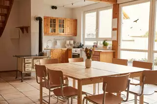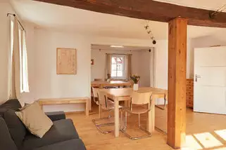 Die große Fest- und Spielscheune mit Kletterwand, Tischtennisplatten, Basketballkorb etc. bietet Ihnen bei feuchter Witterung genügend Raum für Ballspiele und sonstige Aktivitäten. Im großen Speisesaal des Gästehauses bestehen Sitzmöglichkeiten für bis zu 55 Personen.
