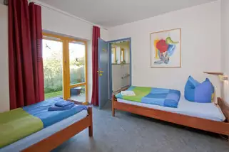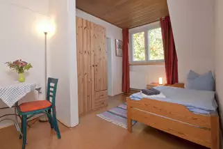 Die beiden Doppelzimmer und das Einzelzimmer im Dachgeschoss des Haupthauses können zusammen mit der vorgelagerten, vollständig eingerichteten Küche auch als Ferienwohnung genutzt werden.