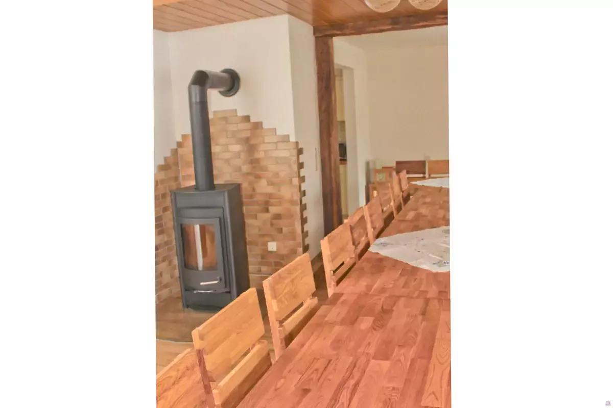 Im Dachgeschoss befindet sich ein Schlafzimmer mit 3 Einzelbetten, ein Bad mit Dusche, WC und Waschbecken und ein großer Gemeinschaftsraum (ca. 70 qm)mit kleiner Küchenzeile für Seminare, Tagungen, Feiern oder einfach zum Spielen für die Kinder.