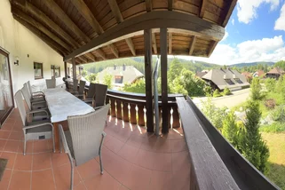 Der überdachte ca. 100m² große Balkon bietet genug Platz um gemeinsam Schwarzwaldabende zu genießen.