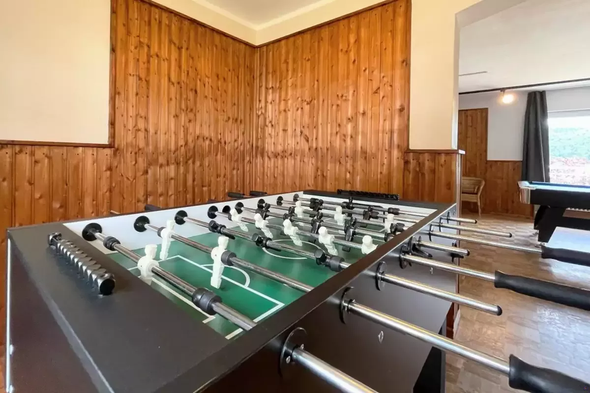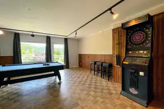 Für Kinder gibt es ein eigenes Spielzimmer mit Spielsachen und Rückzugsmöglichkeiten, während sich im Freizeit- und Gruppenraum Erwachsene bei einer Runde Billard, Kicker oder Dart austoben können. WLAN ist im gesamten Haus kostenfrei verfügbar, sodass Sie auch im Urlaub gut vernetzt bleiben.