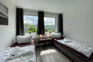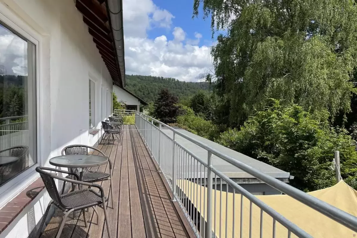 Alle Zimmer sind hell, freundlich und funktional gestaltet, einige mit Zugang zu Balkon oder Terrasse. Große Fenster eröffnen den Blick in die grüne Harzer Natur, die das Haus umgibt. Die Einrichtung kombiniert rustikalen Landhausstil mit modernen Elementen und schafft damit eine warme, einladende Atmosphäre.