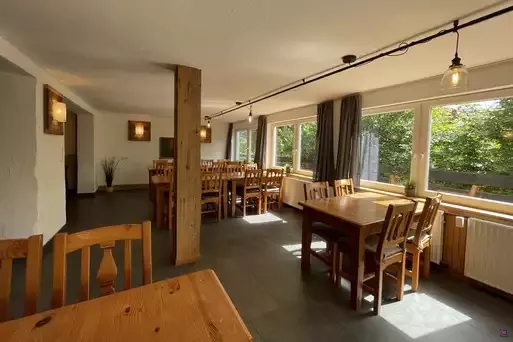 Besondere Highlights sind der separate Gruppenraum mit Billard, Kicker und Dart, ein Spielzimmer für Kinder, sowie die hauseigene Sauna – perfekt zum Abschalten und Regenerieren nach einem aktiven Tag im Harz. Im Außenbereich steht eine weitläufige Terrasse mit Sitzmöglichkeiten und Grill bereit, dazu ein großer Garten mit viel Platz zum Spielen oder Sonnen.