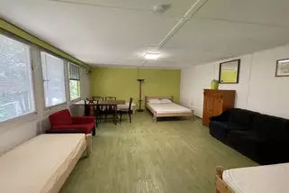 Platz für 15 Personen, fließend Wasser, Strom, Sanitäranlagen, Kochstelle, Dusche, Aufenthaltsraum
