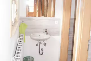 Im Haus befinden sich 4 Toiletten und zwei separate Duschen. Die Zimmer sind alle ausgestattet mit eigenem Waschbecken.