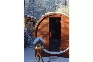 Ebenfalls besteht die Möglichkeit der Nutzung einer Fasssauna und anschließender Abkühlung in unserem Naturteich. Anschließend kann man die Seele im Ruheraum bei Entspannungsmusik baumeln lassen. Es können sogar Massagen gebucht werden.