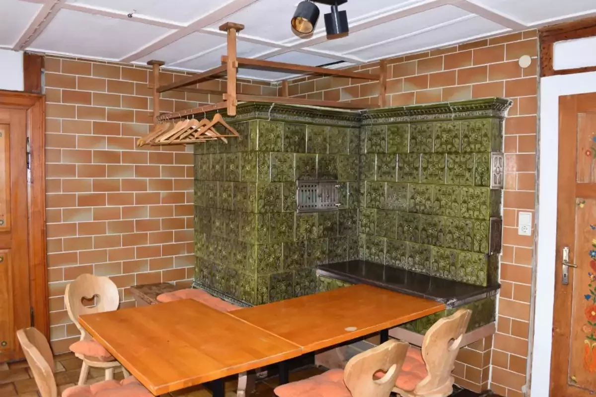 Die Beheizung des Hauses erfolgt über eine zentrale Warmwasserheizung, die mit Holz und Brikett betrieben wird. Die Stube sowie die darüberliegenden Schlafräume werden über den großen Kachelofen mit angenehmer Konvektionswärme versorgt. Warmes Wasser wird über eine Gastherme erzeugt.