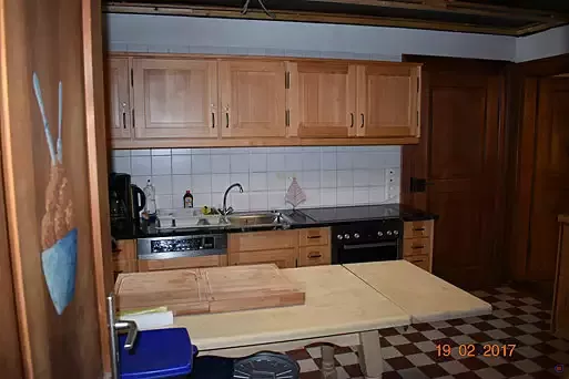 Die technische Zentrale des Hauses befindet sich in der Küche. Von hier aus können alle Essenswünsche für die Nutzer des Hauses erfüllt werden. Die Lebensmittel können im Kühlschrank und in der geräumigen Speisekammer aufbewahrt werden. Von der Küche aus wird auch das ganze Haus mit Wärme versorgt. Das erforderliche Heizmaterial ( Holz, Briketts) ist in ausreichender Menge vorbereitet und liegt griffbereit im Lagerraum neben der Küche.