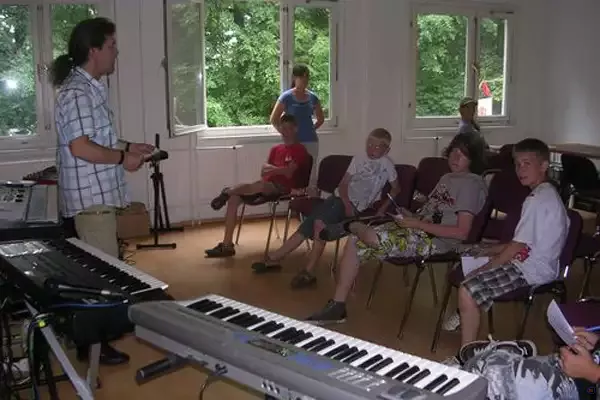 Die Unterbringung erfolgt in einem der 5 Gästehäuser. Jede Gruppe bewohnt ihre eigene Etage mit 25 oder 35 Betten. Auch ein Aufenthaltsraum steht jeder Gruppe zur Verfügung. Die Kinder wohnen in 4,- 6,- oder 8-Bett-Zimmern mit Etagenbetten. Für die Begleiter stehen auf jeder Etage 2 2-Bett-Zimmer zur Verfügung. Die Waschräume und Toiletten befinden sich auf der Etage.