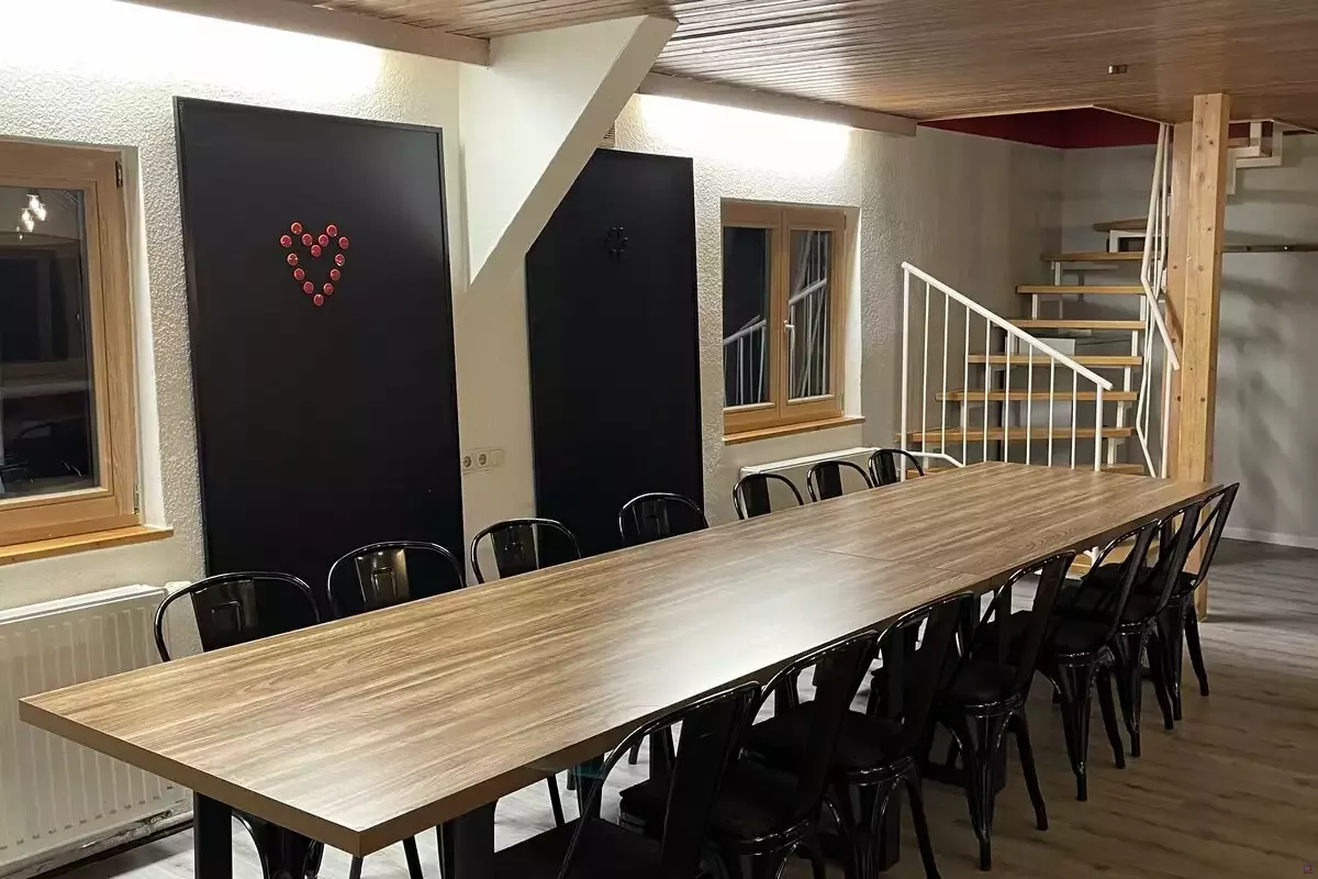 Eine Buchung für Gruppen unter zehn Personen oder Einzelpersonen ist nicht möglich. Haupthaus: 19 Betten (1 x 1, 1 x 2, 4 x 4) im OG, wobei drei Vier-Bett-Zimmer Durchgangszimmer sind. Im EG befinden sich: Küche, Aufenthaltsraum, 3 Duschen und 2 Toiletten.