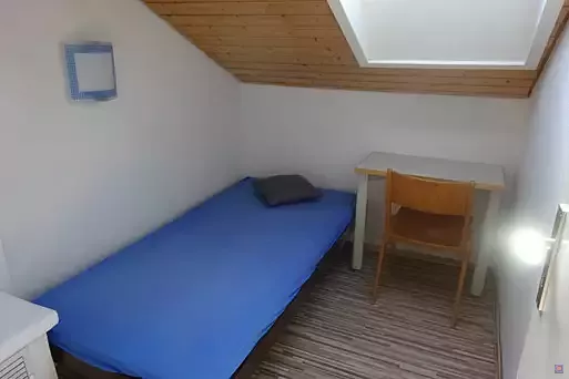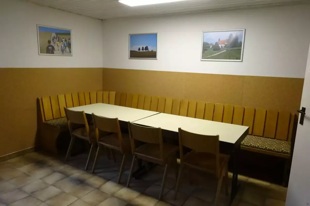 Obergeschoss: 1 Schlafraum für 12–14 Personen, 1 Schlafraum für 4 Personen, 2 Einzelzimmer (max. 20 Plätze), Matratzenlager ohne Decken