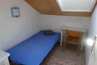 Obergeschoss: 1 Schlafraum für 12 Personen, 1 Schlafraum für 4 Personen, 2 Einzelzimmer (max. 18 Plätze)