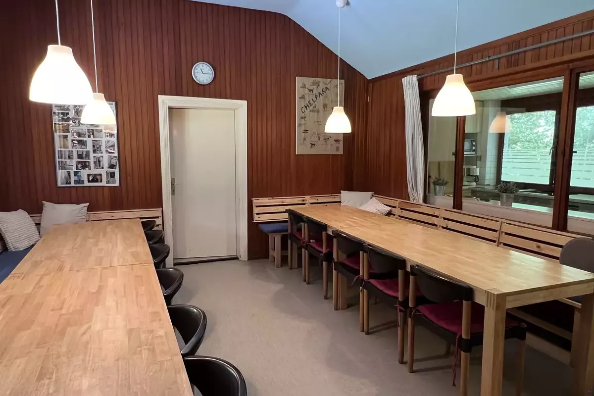 Unser im Grünen gelegenes Haus bietet insgesamt Platz für 18 Personen, verteilt auf zwei Schlafsäle bis zu 4 Stockbetten und zwei Betreuerzimmer mit jeweils einem Stockbett. Der Tagesraum mit direktem Blick in die Küche bietet Platz für viele gemeinschaftliche Aktivitäten, wie etwa Spielen oder das Zubereiten von Speisen. Im Sanitärbereich können 4 Personen gleichzeitig Duschen. Von unseren 5 WC´s ist eines behindertengerecht.