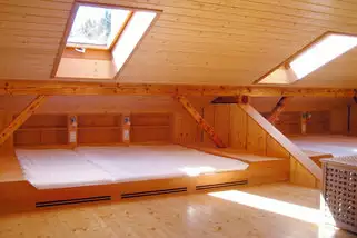 Neben der voll ausgestatteten Küche stehen ein großer für Seminare nutzbarer Aufenthaltsraum und eine Galerie mit gemütlichen Sitzecken zur Verfügung. Der gemeinsame Schlafraum befindet sich im oberen Stockwerk. Das Haus bietet nicht nur ein komfortables Ambiente für konzentriertes Arbeiten oder erholsame Tage, sondern ist im Sommer wie im Winter ein ausgezeichneter Ausgangspunkt für Unternehmungen in freier Natur.