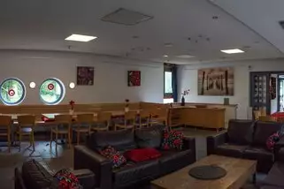 - 3 Gemeinschaftsräume im Erdgeschoss: Ess-/Wohn-/Aufenthaltsraum (ca. 55 qm); Barbereich (fast 40 qm); Spiele-/Freizeitraum (ca. 20 qm)
