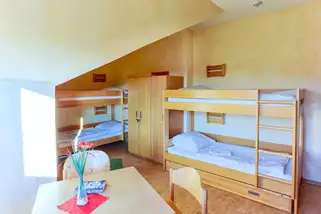 Zimmer 4 ist mit 2 Etagenbetten und 1 Einzelbett ausgestattet