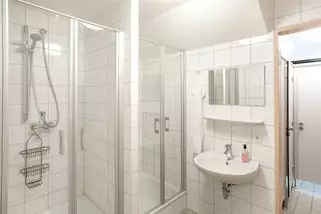 Unsere Gruppengäste haben die Möglichkeit die komplette Zimmeretage mit 6 Gästezimmern allein zu nutzen. Die Zimmer sind mit stabilen hochwertigen Einzel oder Etagenbetten ausgestattet. Im Aufenthaltsraum oben befindet sich eine kleine Gästeküche mit Kühlschrank und allem notwendigen für eine kleine Gruppe. Ebenso befindet sich hier eine Sitzecke mit TV.