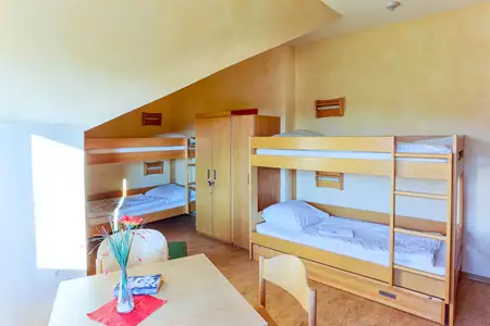 Zimmer 5 und 6 sind mit 1 Etagenbett und 1/2 Einzelbetten ausgestattet