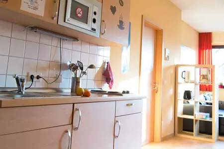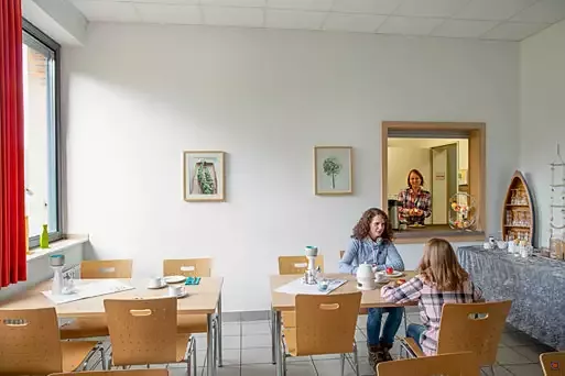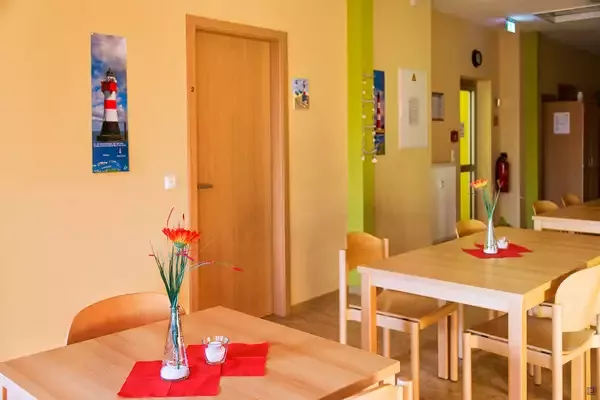 Für die Selbstversorgung kann der große Gruppenraum (100 m²) für den Aufenthalt genutzt werden.