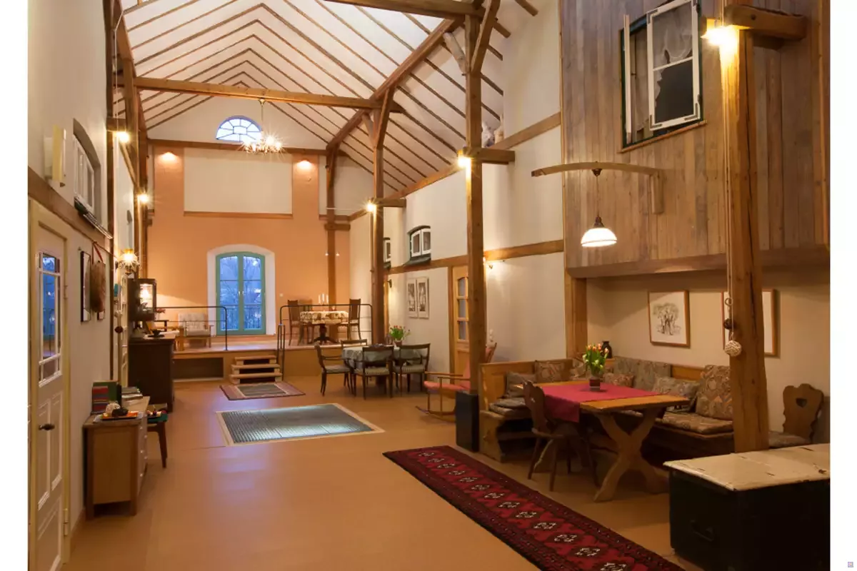 Größe EG: 265 m², Größe OG: 330 m². Die ehemalige Tenne bietet Platz für ca 25 Personen zum gemeinsamen feiern, speisen und gemütlich zusammensitzen.