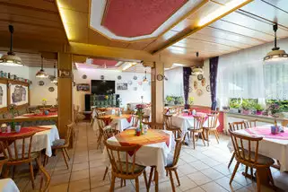 Die meisten Zimmer verfügen über einen Balkon mit Balkonmöbeln. Im Souterrain befindet sich das Restaurant welches bei Gruppenbuchungen als Gemeinschaftsraum dient und drei weitere Zimmer welche zum Beispiel als Tischtennis- Fußballkickerraum, Billardraum und Internet- TV- oder Leseraum vorhanden sind. Von unserer großen Südterrasse können Sie bereits zum Frühstück einen herrlichen Blick in die waldreiche Berglandschaft des Fichtelgebirges genießen. Auf Anfrage unterbreiten wir Ihnen sehr gern ein Angebot für Halb- oder Vollpension. Wir bieten Ihnen kostenloses WLAN an.