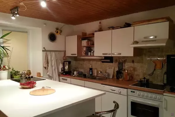 1 Wohnung, 3 Räume, plus kleine mit Esstisch Küche (3 Räume, 2 WC/DU)