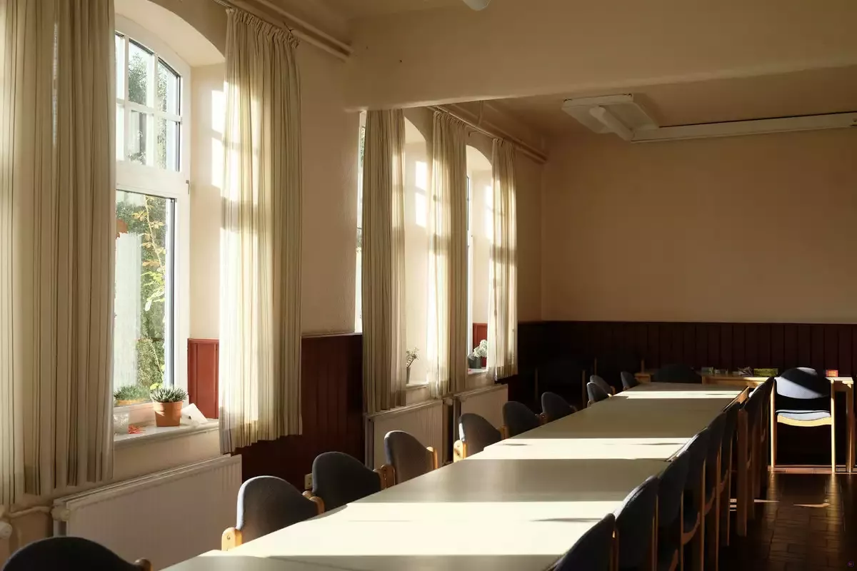 Großer Speise- und Aufenthaltsraum; kleiner Besprechungsraum für das Betreuerteam; ein Clubraum mit Tischtennisplatte und Fußballkicker; Kamin- und Lesezimmer mit Klavier; Billardraum; sehr gut ausgestattete Gruppenküche; zwei Waschräume mit jeweils 3 Duschen und 3 WC; sep. WC.